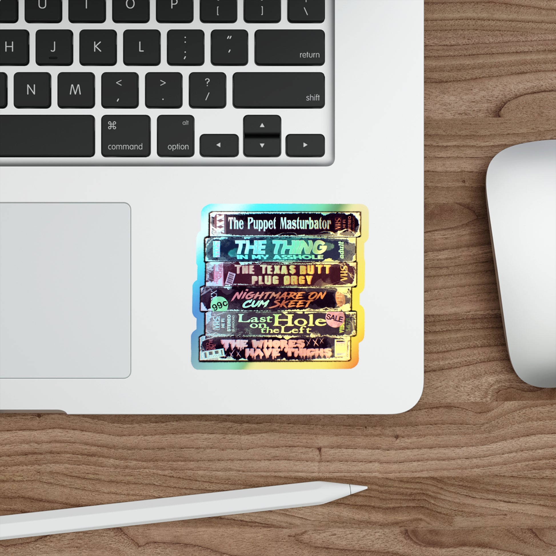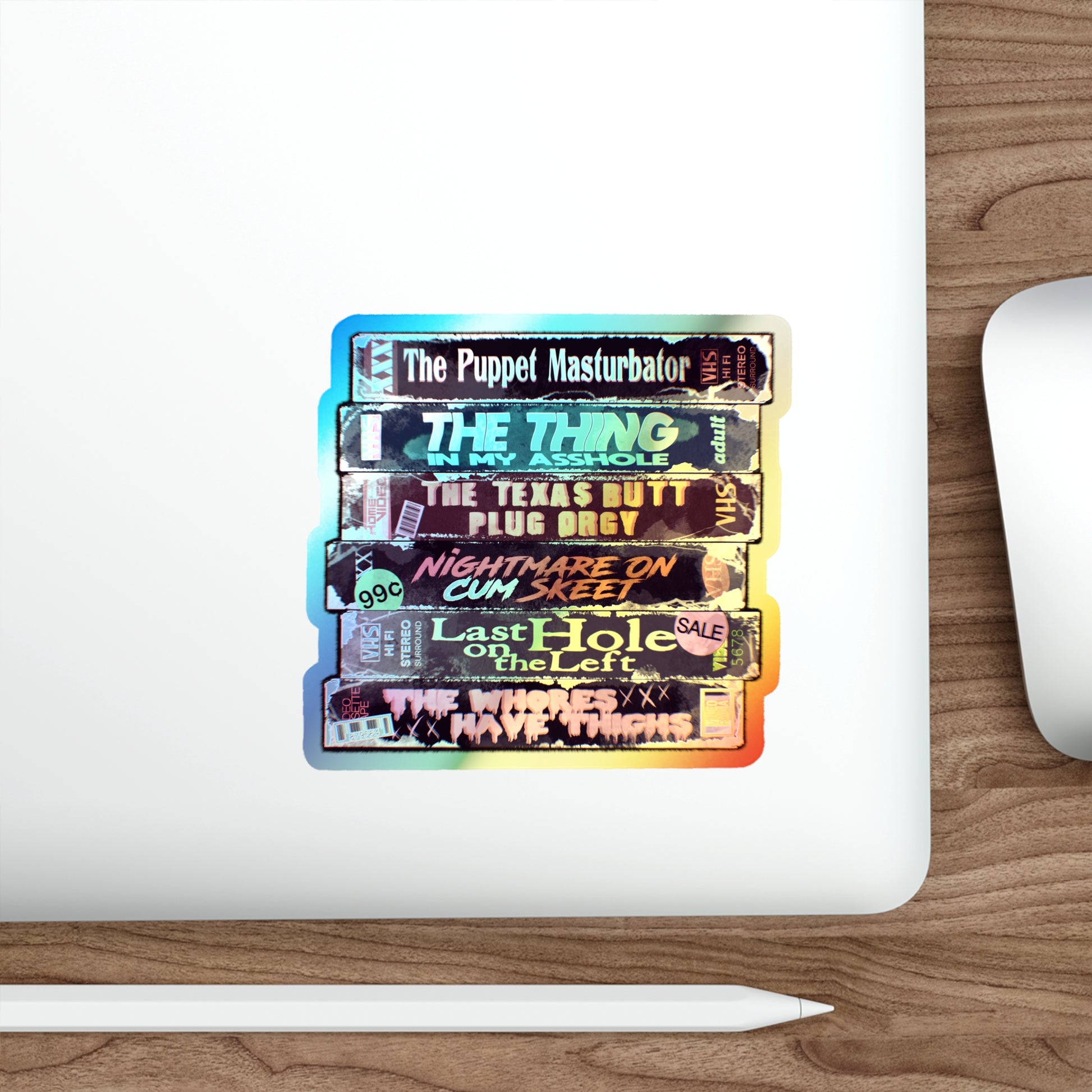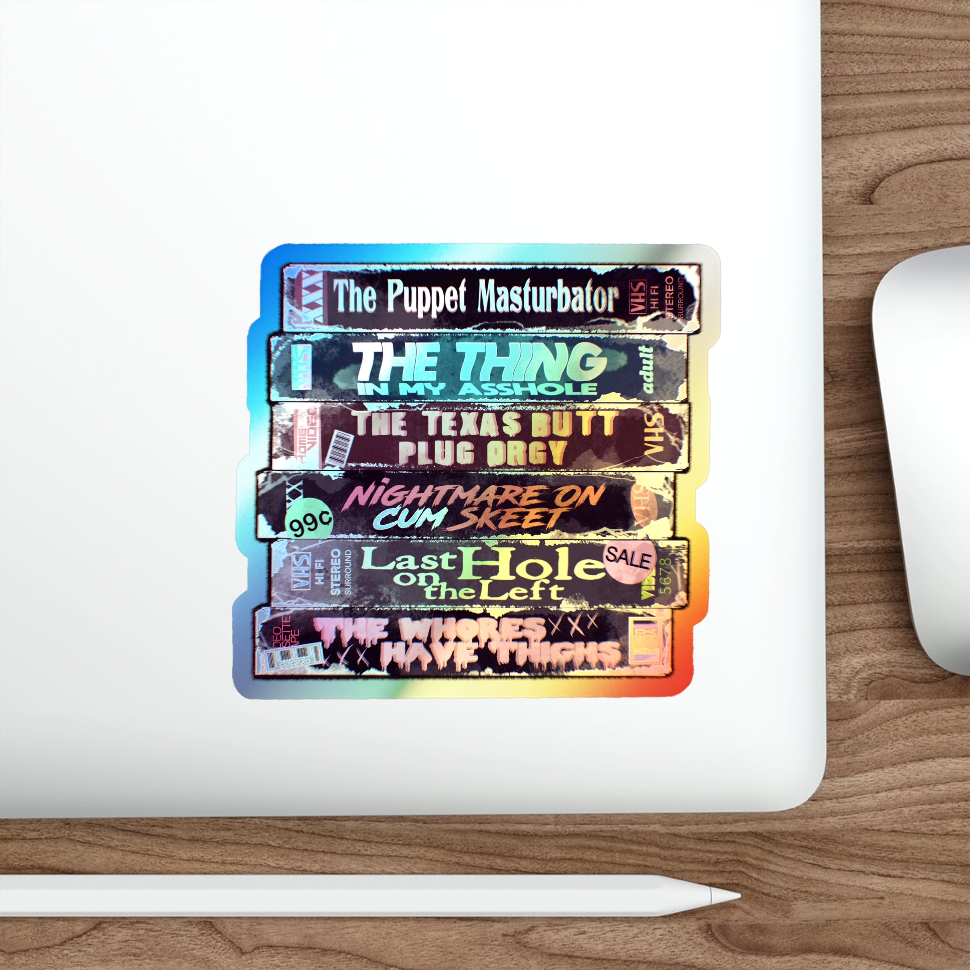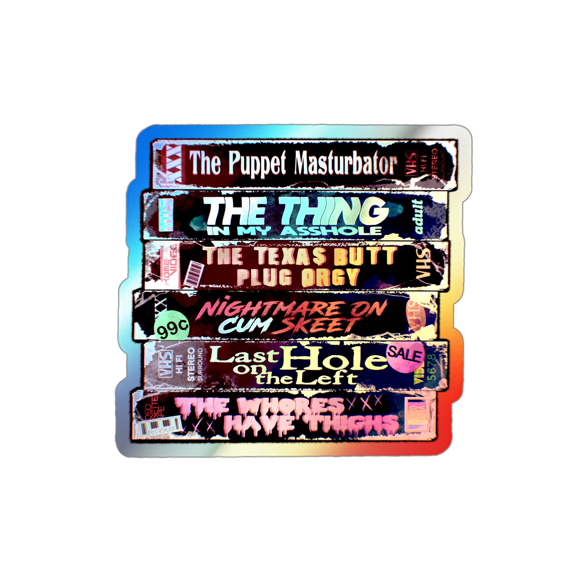 Adult Horror VHS Holographic Die-cut Stickers