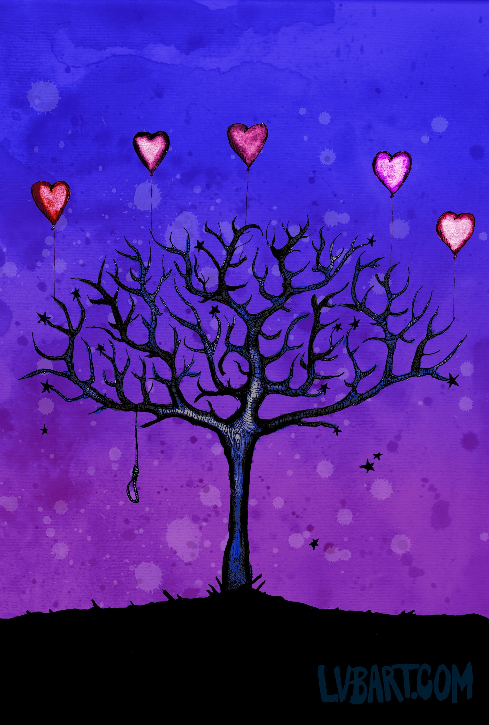 Tree Hearts & Stars 3 With Noose Fine Art Print