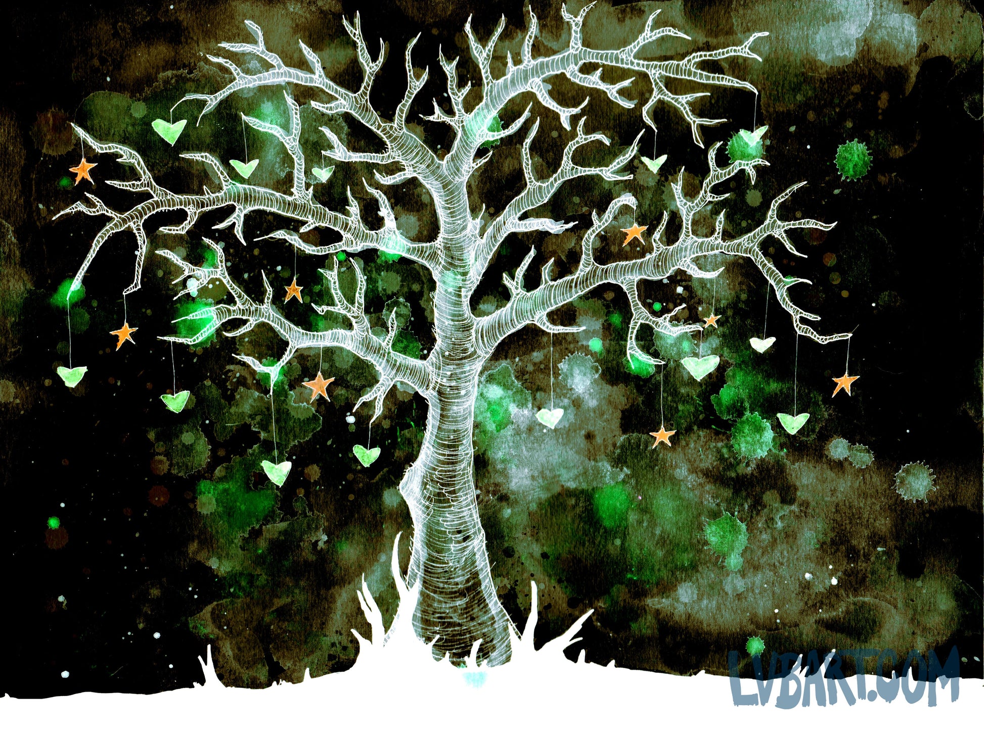 Tree Hearts & Stars (Invert) Fine Art Print